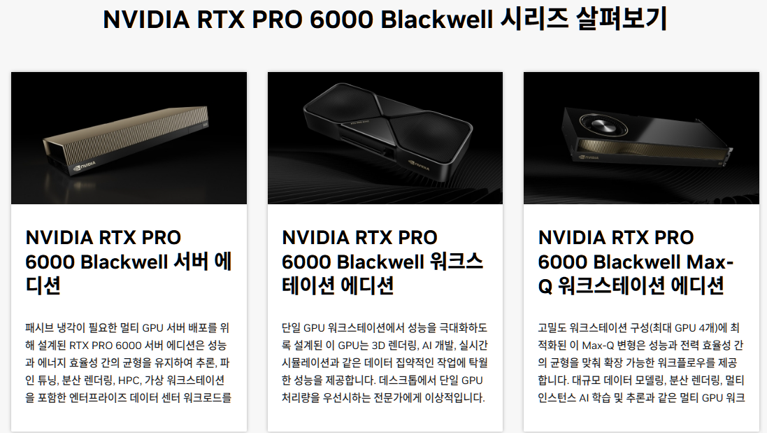 자료 출처 == https://www.nvidia.com/ko-kr/products/workstations/professional-desktop-gpus/rtx-pro-6000-family/