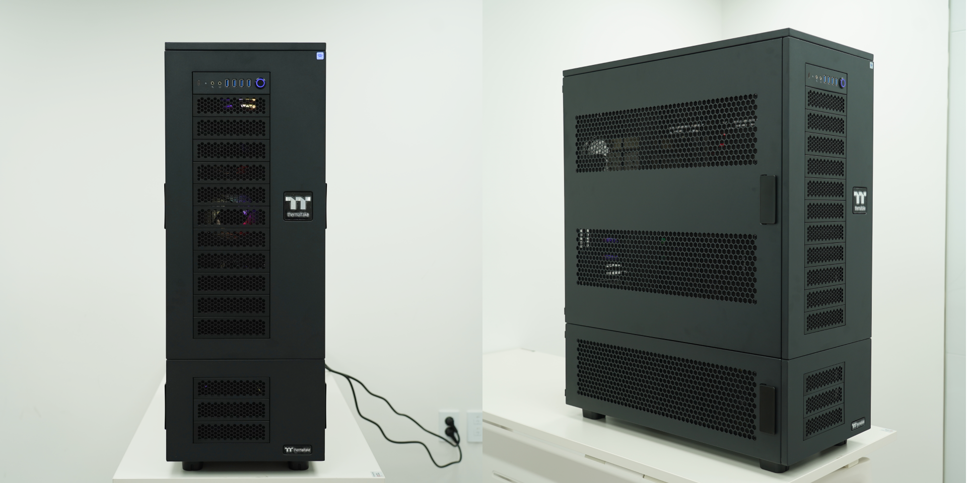 이번에 납품된 Deepsilent X4 RTX 5090 수랭 워크스테이션은 단순한 조립 시스템이 아닌, 고성능 GPU 환경에서 안정적인 운용이 가능하도록 제작과 테스트 과정을 거쳐 완성된 워크스테이션입니다. 멀티 GPU 환경에서는 발열과 전력 사용량이 높아지는 만큼, 내부 공기 흐름과 냉각 구조를 고려한 설계가 매우 중요합니다.